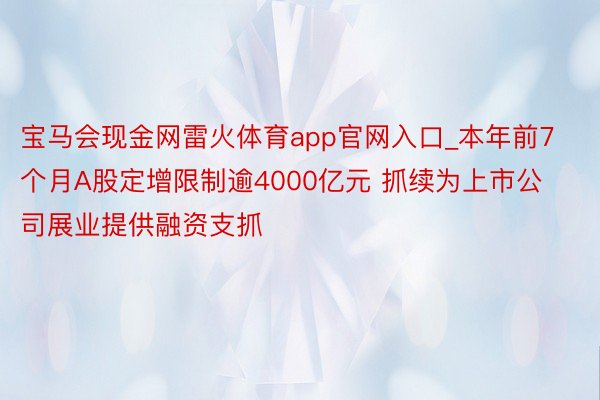 本年前7个月A股定增限制逾4000亿元 抓续为上市公司展业提供融资支抓