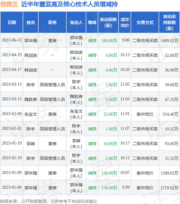 火爆信雅达近半年内的董监高及中枢工夫东说念主员增减捏折服如下: